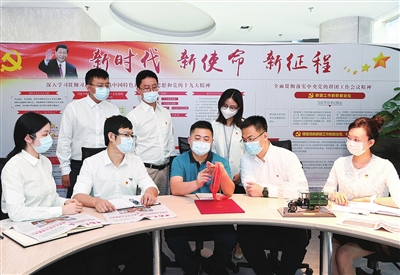 9月9日上午,中国邮政集团有限公司直属机关青年员工学习习近平总书记在全国抗击新冠肺炎疫情表彰大会上的重要讲话精神座谈会召开。作为一名准“90后”,刚刚获得全国抗击新冠肺炎疫情先进个人荣誉称号的湖北省武汉市江岸区邮政分公司上海路投递站投递员徐龙,与集团公司直属机关青年员工代表进行了深入交流,希望和广大青年邮政员工一道,继续秉持“人民邮政为人民”的初心使命和服务宗旨,立足本职、做好工作,不怕吃苦、不怕受累,善于学习、乐于学习,为企业、为社会多做贡献。图为徐龙向大家展示全国抗击新冠肺炎疫情先进个人奖章。□本报记者 朱正义 邸亚峥 摄影报道